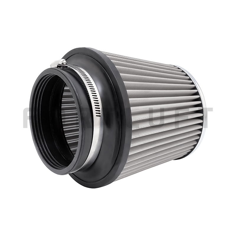Конструкция конусного воздушного фильтра состоит из литого полиуретанового корпуса и хлопкового фильтрующего элемента, установленного на металлический каркас, который стянут металлической сеткой с внутренней и внешней стороны. Такая конструкция позволяет разрабатывать фильтры для двигателей мощностью до 600 л.с. без риска деформации фильтра и его попадания во впускную систему. Посадочный элемент фильтра выполнен из полиуретанового патрубка с нержавеющим хомутом. Качественный хлопок фильтров FORTLUFT не подвержен разрушению при работе в неблагоприятной среде, фильтр можно мыть водой и повторно использовать. Рекомендуется обслуживать фильтр каждые 10 000-20 000 км.