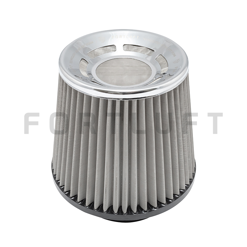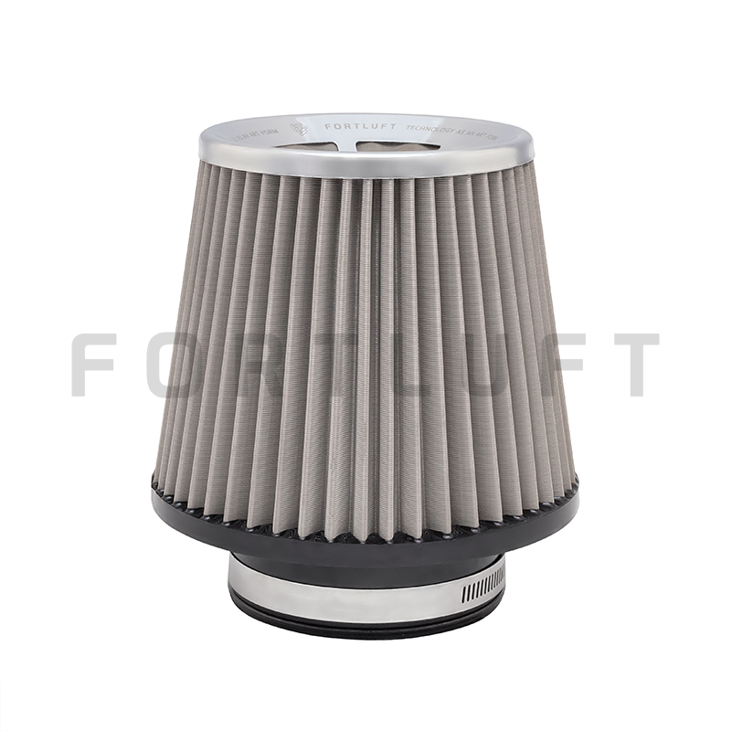 Конструкция конусного воздушного фильтра состоит из литого полиуретанового корпуса и хлопкового фильтрующего элемента, установленного на металлический каркас, который стянут металлической сеткой с внутренней и внешней стороны. Такая конструкция позволяет разрабатывать фильтры для двигателей мощностью до 600 л.с. без риска деформации фильтра и его попадания во впускную систему. Посадочный элемент фильтра выполнен из полиуретанового патрубка с нержавеющим хомутом. Качественный хлопок фильтров FORTLUFT не подвержен разрушению при работе в неблагоприятной среде, фильтр можно мыть водой и повторно использовать. Рекомендуется обслуживать фильтр каждые 10 000-20 000 км.